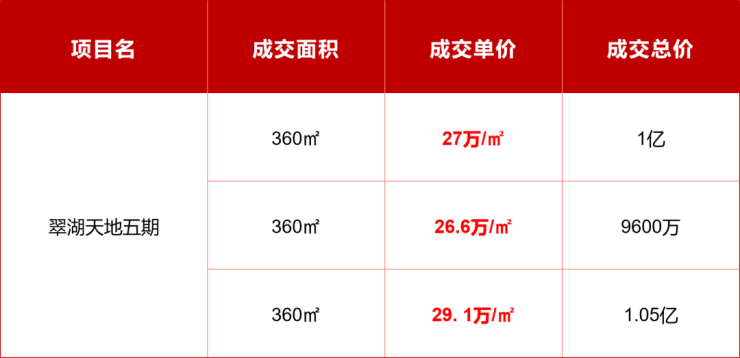 黄浦新天地 翠湖五期360㎡大户型过去半年的成交价格,均在 26.6万/㎡+,价格最高的一套 单价甚至达到29.1万/㎡。