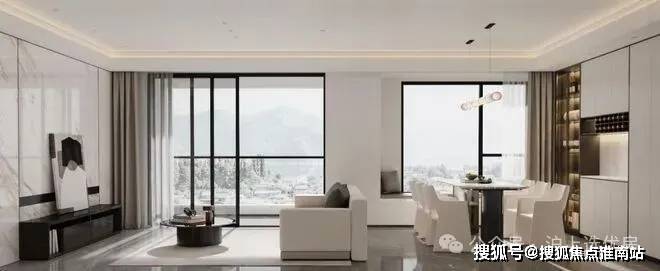 建筑立面采用流体瀑布式立面,实现建筑光影美学的黄金比例,呈现打破时间桎梏的高级品质感;大尺度窗墙比、顶层材质延用国际简约风格美学,在细节之处精于琢造,实现建筑整体别具一格的形象风格。