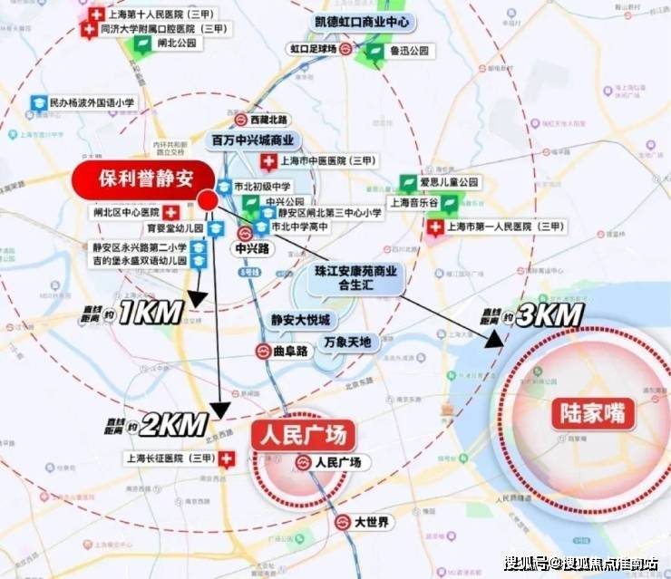 商业方面,项目1公里范围内有静安大悦城、万象天地、凯德虹口商业中心、百万中兴城商业(在建中)、珠江安康苑的商业合生汇(在建中)等大型商场。