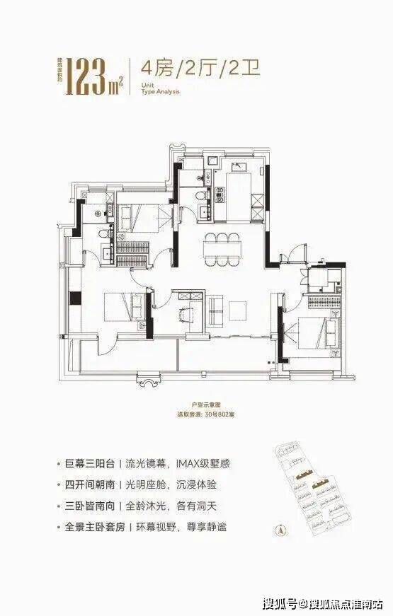 建面约135㎡的4房,大横厅设计,IMAX巨幕视野。