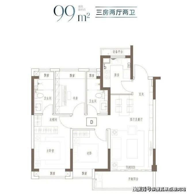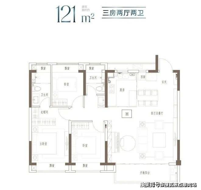 户型特点:3开间朝南,全屋阳光充足;L型厨房转角移门设计,最大化空间视野;四飘窗设计,通透空间享受;动静分区,亲密有度;套房式主卧,容纳私谧生活点滴;