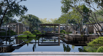 南面度假水庭院更是点睛之笔,水波潺潺为小区增添灵动之感。