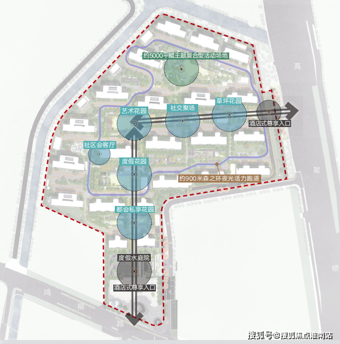 在小区内部中建虹溪璟庭以“尊享归家体验感,全龄化互动体验感,健康生活体验感,友好邻里社交体验感”四大主题串联整个社区。