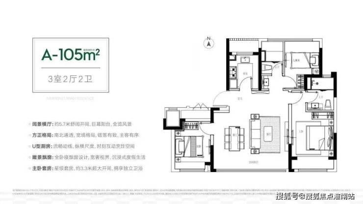 建筑面积约105平的户型有两种设计,是南向约5.6/5.7米横厅设计,空间感比得上市面上的120平户型。3房2卫的设计,兼顾了居住的功能性和舒适性。多飘窗的设计,有效延伸了室内空间,大大增加了实际使用面积。
