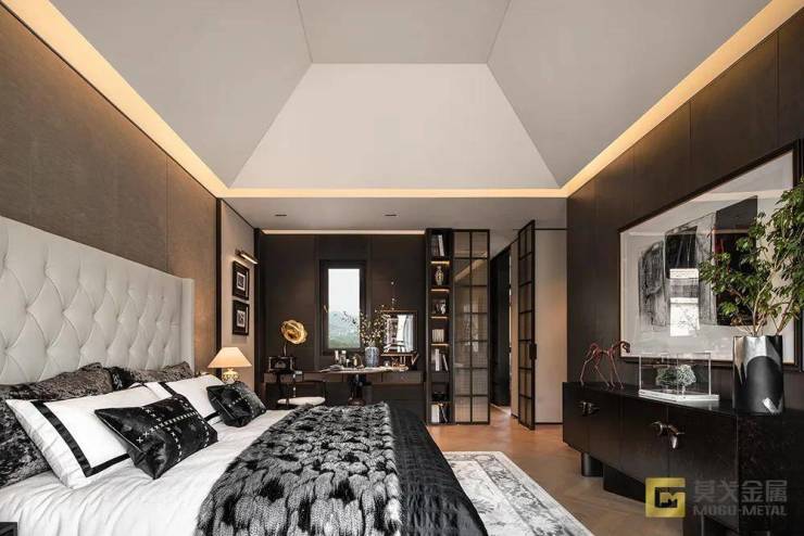 夸张的还有层高,一层约3.6米,二层也有约3.2米,主卧的穹顶最高处更是达到了4.8米,配上大屏落地窗,气场十足。