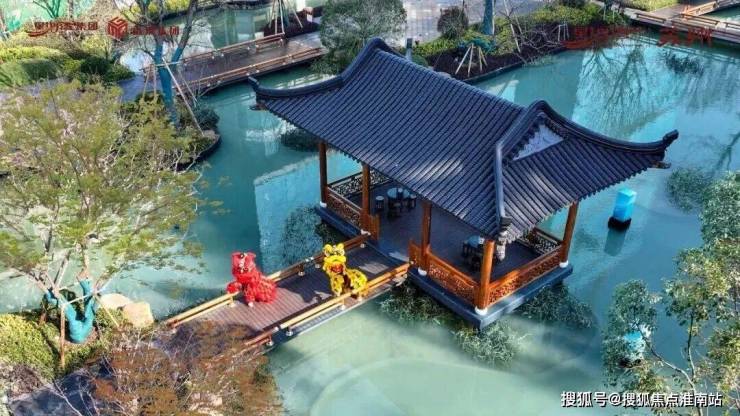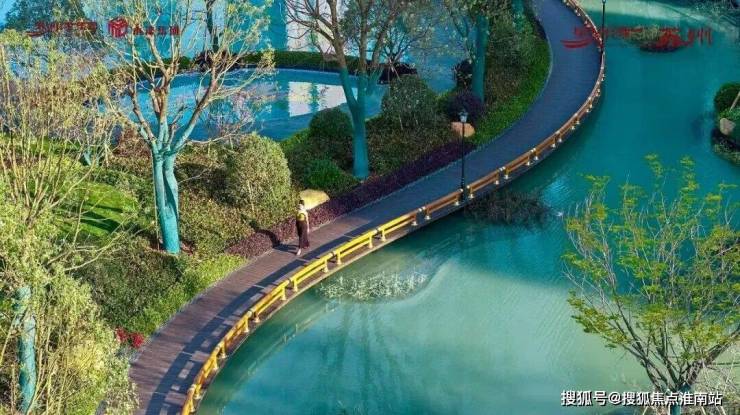 约2/3土地面积设计为水系园林,中央水景近8000㎡,四维景观体系,融合水景、奇石、名贵花木,以现代手法转译“小桥流水人家”的姑苏画境。