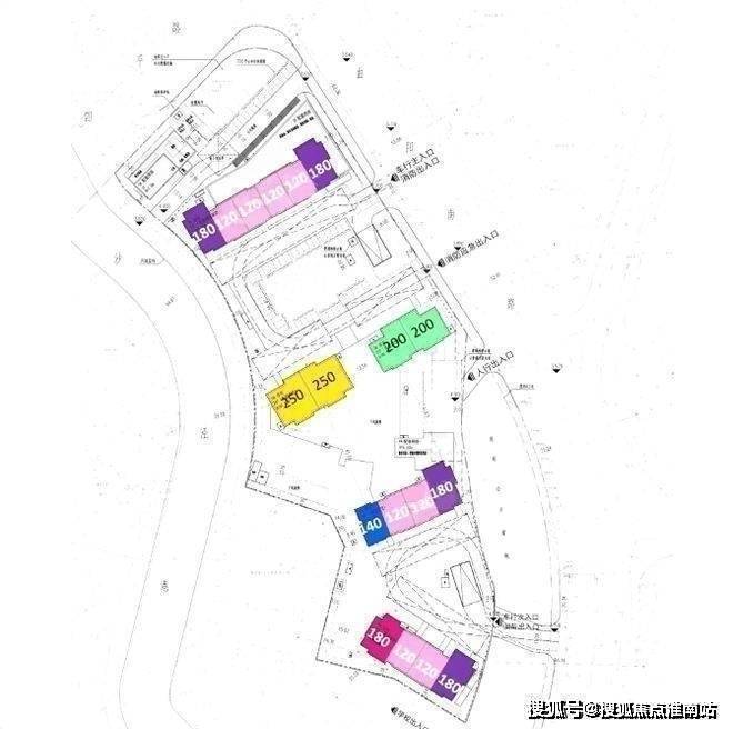 北面楼栋可能是1层6户。中间并列2幢楼大概率1层2户,2台电梯,独立电梯厅设计。南侧2幢楼可能是1层4户,2台电梯的配置。