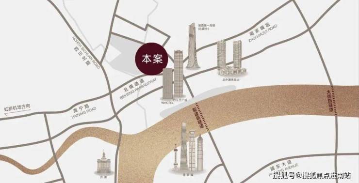 傲立“一江一河”交汇处(直线距离黄浦江约1km),未来将打造成为彰显上海城市核心竞争力的黄金水岸和具有国际影响力的世界级城市会客厅,出入之间,相逢城市高阶未来。