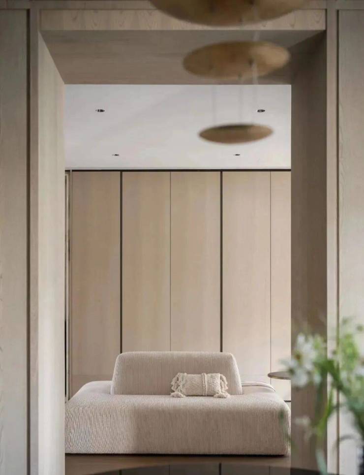 三楼整层为主卧套房, 样板间设计了双开门入卧室,进入起居空间,样板间选择在这里放一些艺术装饰、设计吧台来彰显主人品味。
