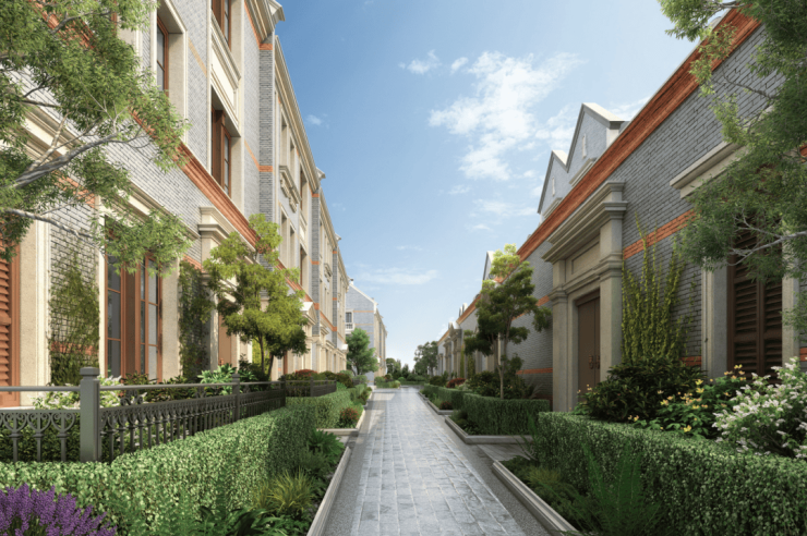 项目在园林景观营造上, 项目从海派洋房的历史记忆入手,结合当代审美需求,打造了 雅集六境、风华四艺、画境八园 等多个景观主题与节点,以百年上海洋房常用的八种植物为主,打造富有层次与移步换景的精致园林,让未来业主的每一次归家,都充盈着雅致的海派风情。