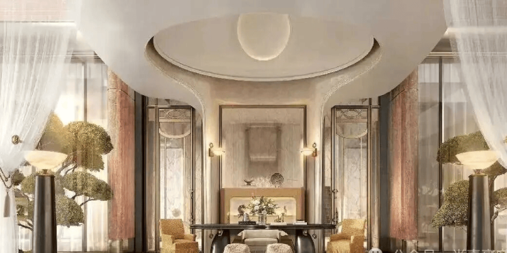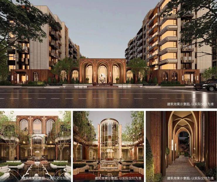 甄选贝金米黄石材、深色薄陶砖与仿铜铝板,打造雅致内敛、奢华不张扬的建筑立面,将经典与现代完美融合。