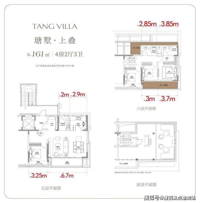 高实得率,下叠旁有约100-200m²绿地,地下室约80-100m²;上叠屋顶有超大露台