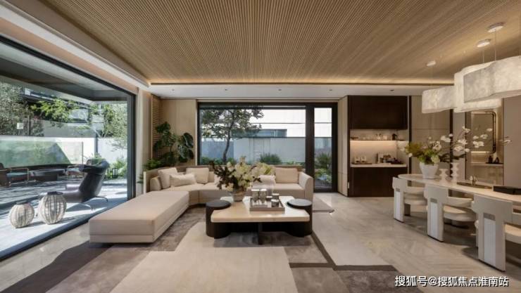 在户型设计上,全创新的户型产品研发,每一类户型都精准匹配高端客群的需求:联排首创6.9米地下室层高、双首层设计不仅引入自然天光,更实现了200%的超高赠送率;叠拼大面宽高赠送、全套房和独立花园入户的设计打造六边形户型;四代宅与洋房提供多元体验,得到客户深度青睐及认可。