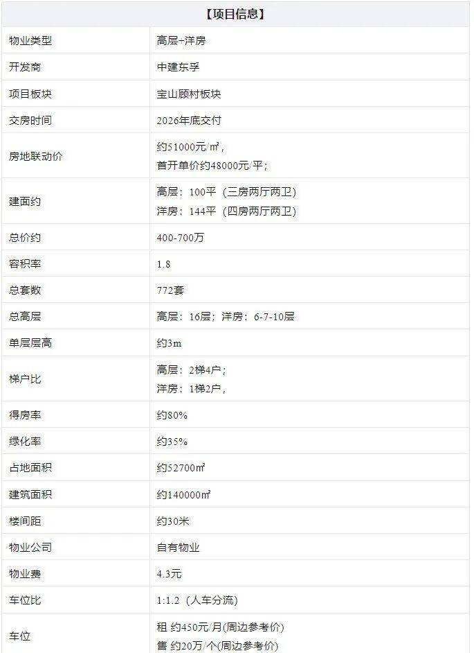 今年3月15日,第一批次首轮土拍中,中建八局以总价265743万元,拿下了宝山区顾村镇潘泾社区BSP0-0301单元07B-02地块,容积率1.8,溢价率5.56%,楼板价27974元/㎡,房地联动价51000元/平。