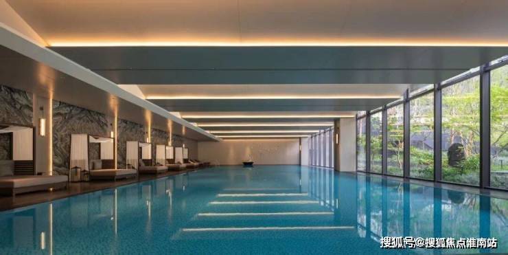 公区上,集健身、书吧、恒温泳池、私宴厅等于一体的约2000平方米下沉式会所,成为圈层生活的核心枢纽;13栋架空层泛会所,有效激活邻里交流与社区活力;此外,社区景观中还规划了约2300平方米的大面积水景与约5000平方米的集中式绿地,超级尺度在苏州改善住宅市场中可谓罕见。