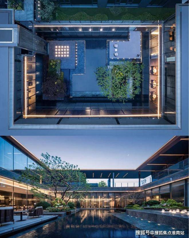 山水入画营造下沉式中央庭院 ,约12米飞流星瀑,臻选蓝翡翠奢石打造银河水境,百年丛生乌桕封藏四季风景,邀山水融自然,一方东方禅意画境