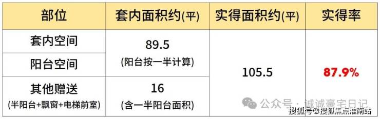 该户型大量的飘窗+双阳台设计,保证了每个功能间的通风采光,也提升了户型的实得率。经过专业建筑师测算,假设阳台全部封闭的情况下,项目建面约120㎡户型实得面积约105.5㎡,实得率约88%。(该实得率数据根据实得面积预估计算所得,仅供参考,不作为置业依据。最终得房率以购房合同为准)