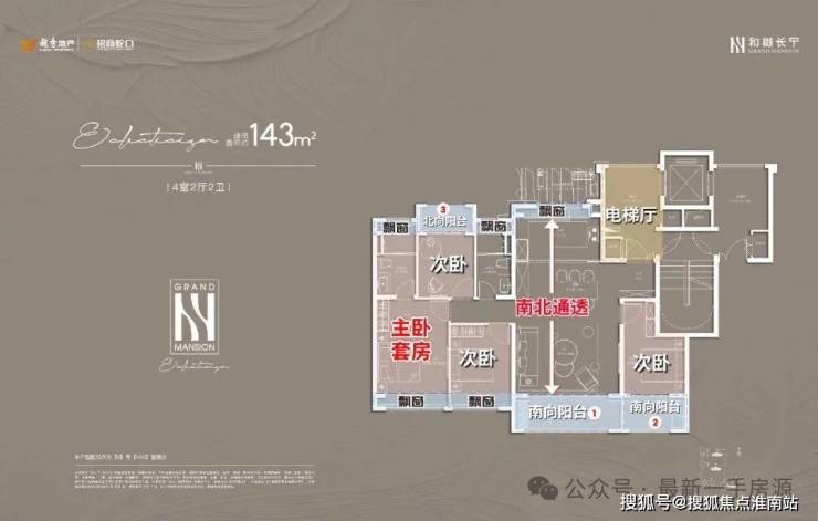 项目建面约143㎡户型的设计无疑是市场一流水准,一梯一户保证私密性和尊崇感;四开间朝南+大宽厅,采光效果爆棚;主卧贯穿南北套房设计,南北都有飘窗,舒适度可圈可点。