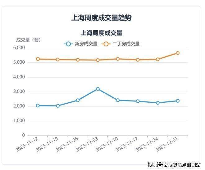 从周度数据看,最近一周(截至2025年12月31日)总成交套数为8032套,环比前一周增长6.8%,其中新房成交套数环比增长6.1%,二手房成交套数环比增长8.3%,短期热度有所回升。