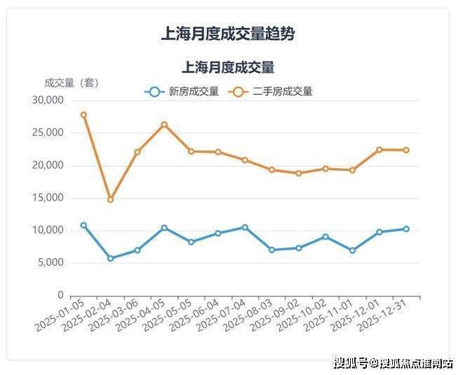上海市场在年末呈现新房与二手房走势的短期背离。2025年12月,新房成交套数环比增长4.8%,而二手房成交套数微降0.3%,新房市场在年末表现相对活跃。