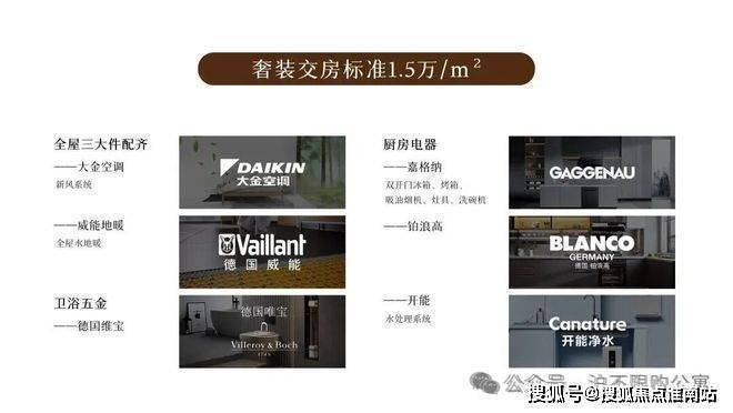 顶奢精装标准:1.5 万 /㎡装标,全一线国际品牌