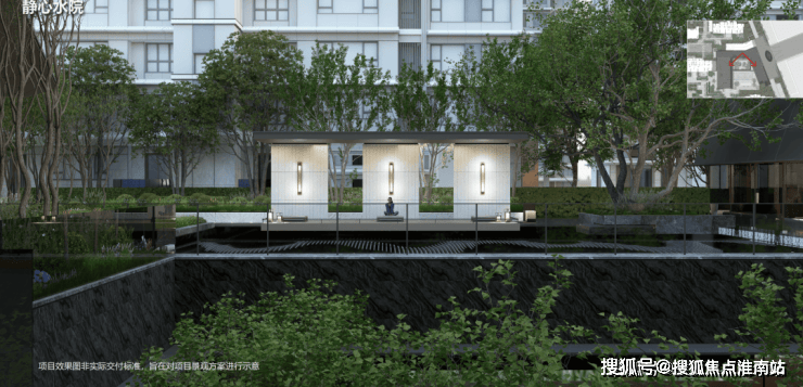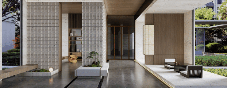 目前实景示范区已经公开,整个项目由日清设计的宋照青亲自执笔,打造出约340㎡的下沉庭院.
