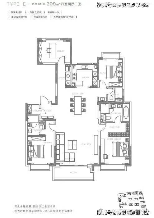 这是项目收官之作,推出的2栋楼,分别是12、16小高层,位于小区第一排,景观视野佳,俯瞰风貌别墅区。尤其是209㎡四叶草格局的王炸户型,独立电梯厅、国际一线精装、双会所、约3.5万方园林景观、无边际服务、自带约10万方合生汇商场配套,约500米一线临江。
