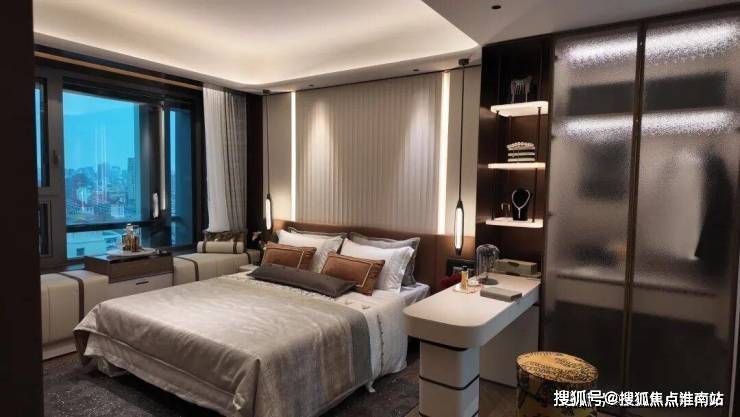 l超拓设计:三开间朝南+横厅,主卧套房配置独立衣帽间及270°转角飘窗,空间利用率大大提升。