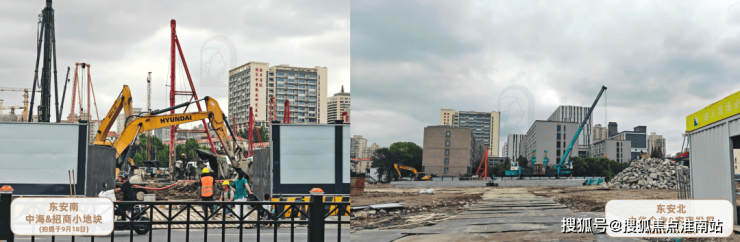 现场已进入打桩阶段,目所可及的工地的土地已经开始翻涌,施工正在全面展开。