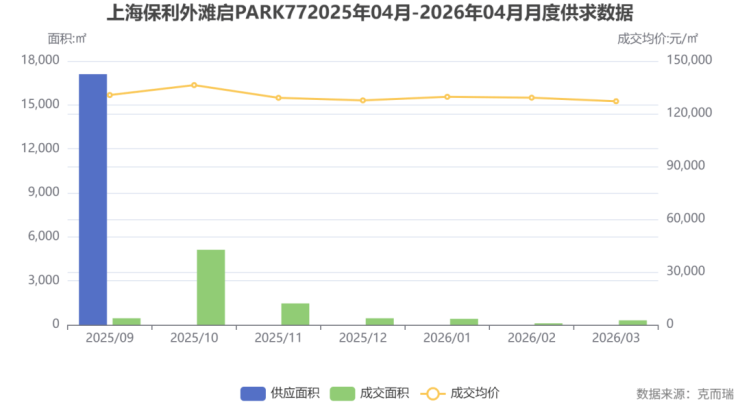 数据解读:根据克而瑞数据,保利外滩启PARK77自2025年9月首次供应以来,成交均价稳定在12.7万-13.6万元/㎡之间。相较于周边动辄15万+甚至更高价位的新房项目,其价格优势明显,具有较高的性价比。