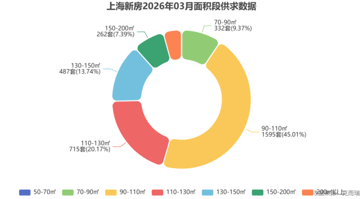 我们来看一组克而瑞关于上海新房2026年3月面积段供求的数据:
