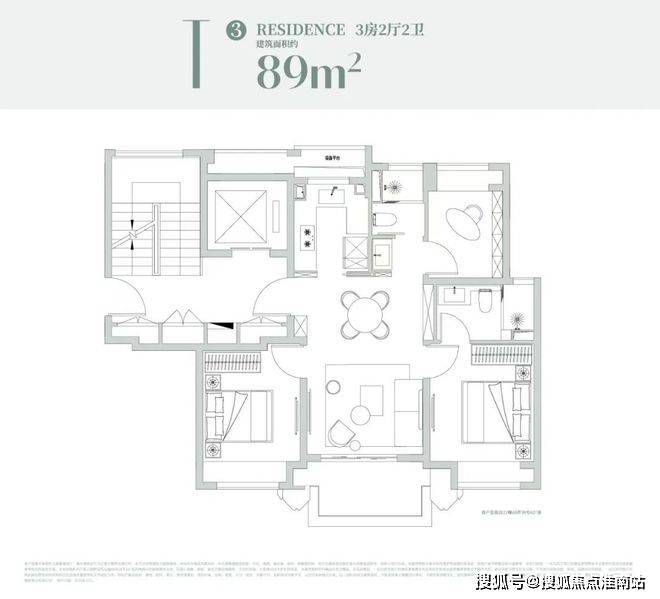 全屋飘窗设计,南向双套房卧室均配备独立衣帽收纳+卫生间设计,居住舒适度、景观视野与隐私性相当优秀!