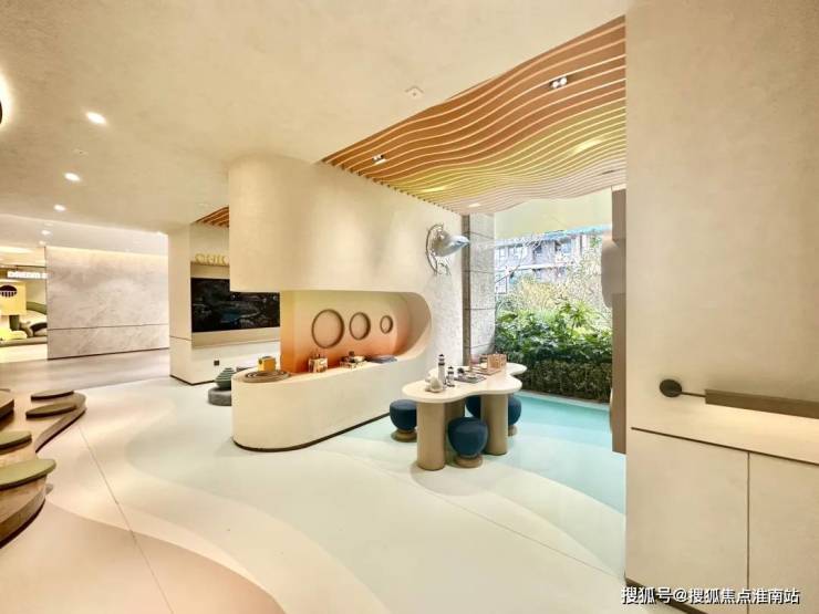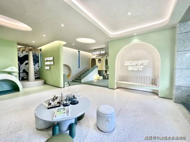 社区内部还有开放式架空层设计,结合建筑、空间、自然环境关系,室内室外联动,呈现一个 景观会客、海浪书屋、儿童休闲 等多重功能的开放式 架空层 ,目前实景基本还原效果图,未来业主及孩子也有一个玩乐及阅读的开放式公共空间,更具生活趣味~