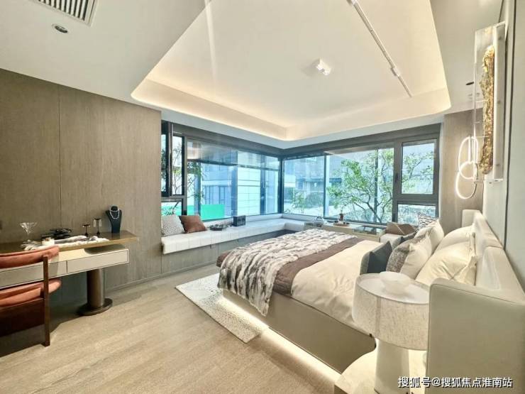 主卧套房设计, 创新打造 270°景观飘窗, 有效延伸室内空间及功能,景观视野绝佳!