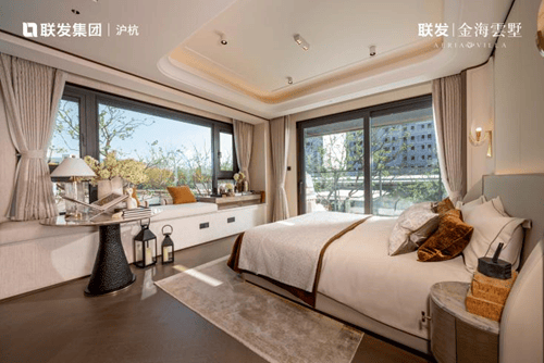 270°环幕视野:无论是上叠的主卧套房,还是下叠的宽奢厅堂,多处设计有270°转角飘窗或采光面,将湿地公园的四季风光框定成室内长卷。