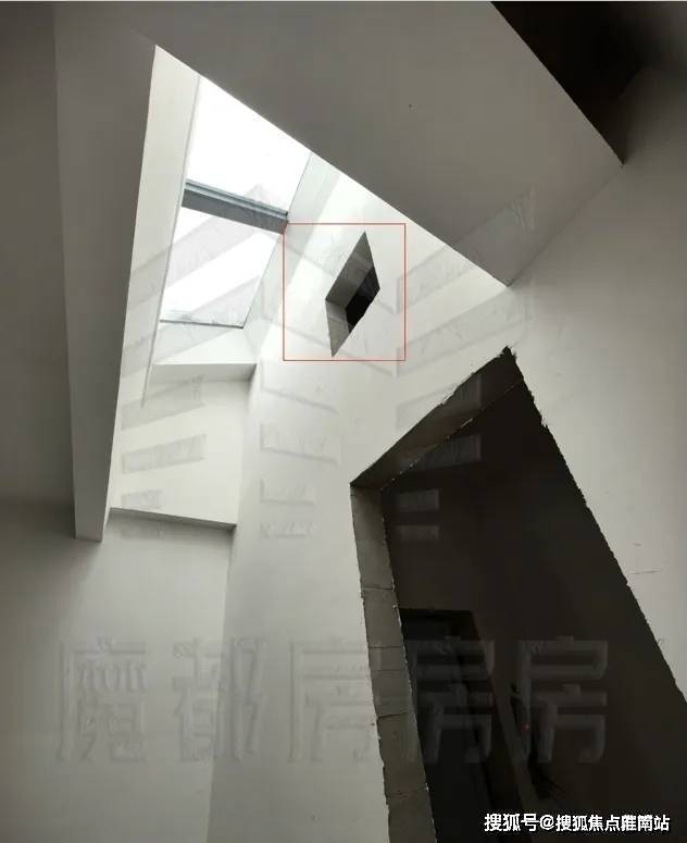我们实际并不是从正门进入,而是从北面进入,然后由东面的落地窗进到#1室内,所以进门的时候眼睛一瞬间就会被客厅挑高给吸引住,一二层打通了,后期想多要一个房间也可以封上,会多大约50+㎡.