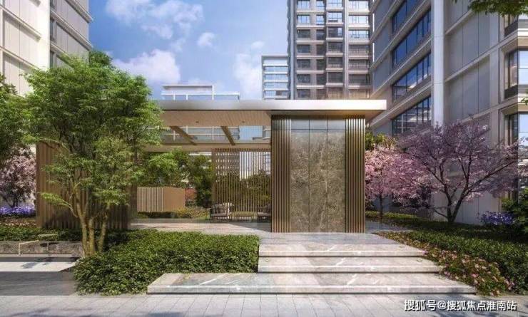 尺度大气的现代风格门头,入口展现艺术水苑、叠水瀑布以及层级绿化,彰显归家仪式感。