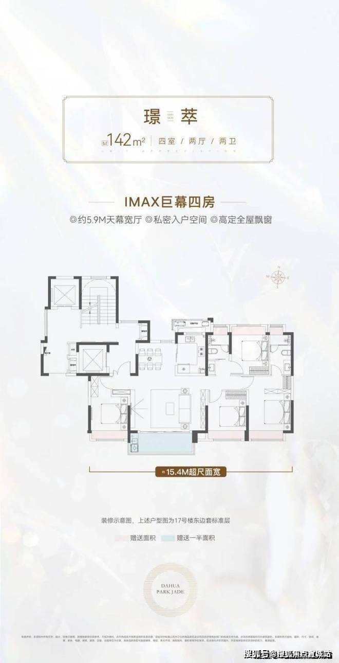 142㎡天幕四房:约5.9M阔尺宽厅/约15.4M南向面宽,宽载巨幕光景