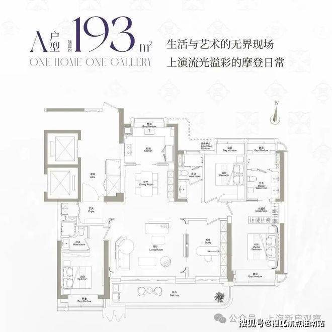 建面约193㎡四房两厅三卫:项目楼王级产品,两梯两户,3.15米层高,得房率高,空间奢阔,适配终极改善需求 。