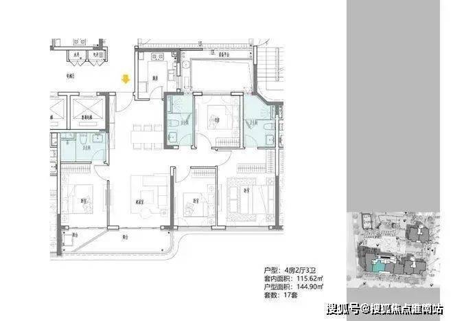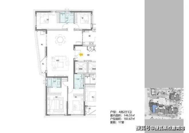 B地块,规划1栋17F住宅,建面约108-148m²高层;