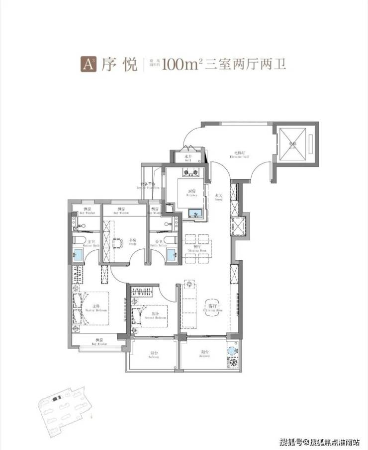 除了建面约100㎡3房外,这个建面约114㎡产品也是主打: