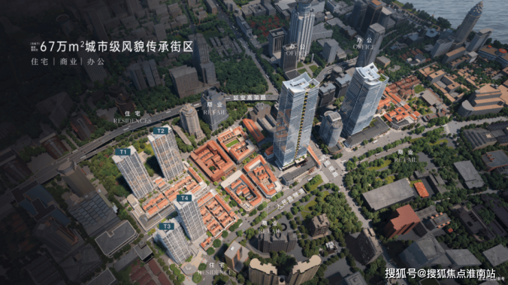 金陵华庭体量高达约67万方,远不止四栋塔尖住宅,而是形成了商住办综合性的整体开发,是一个超级城市综合体。