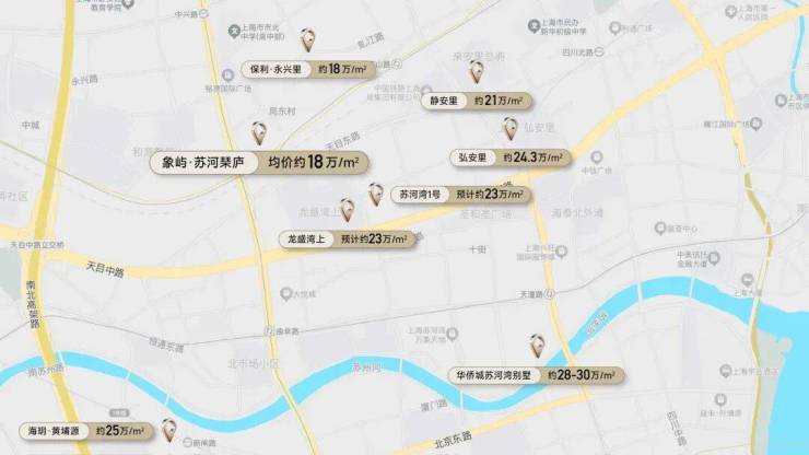 核心商业(1 公里内):静安大悦城(749 米)、苏河湾万象天地、宝格丽酒店