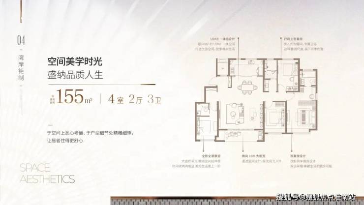 「东岸观邸」在户型设计方面也是下了很大的功夫,在保证户型方正的基础上,通过对住宅内部功能空间结构的科学设计,尽可能创造更多南向空间。