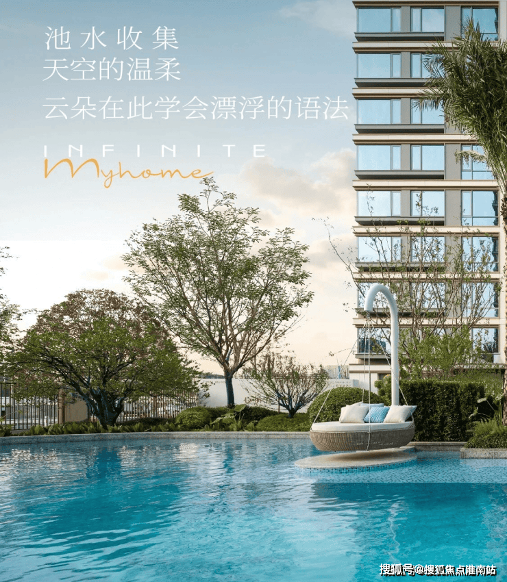 中天拾光翠语丨一池澄澈映画美好时光,当澄澈水境全然铺展于眼前,生活便有了诗意流淌的形状,中天·拾光翠语-「翠屿」戏水池悠然呈现,水面倒映着云影天光,更映照着未来美好生活的模样,晨光中树影摇曳成诗。