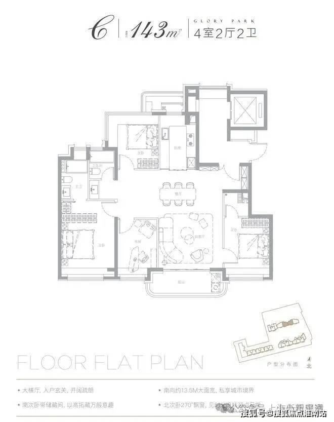建面约143㎡4房样板间如下