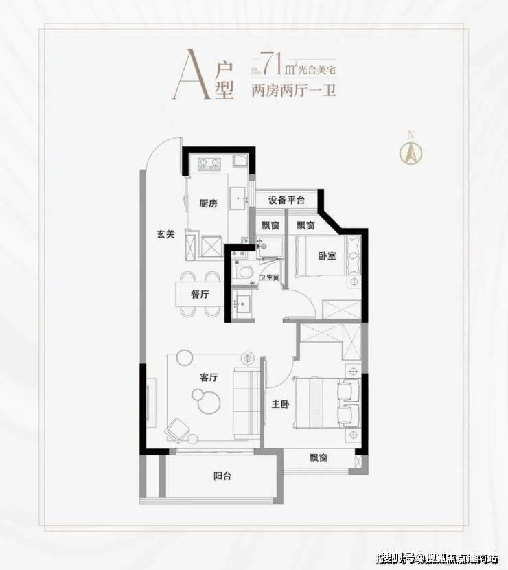 高层建面约71㎡2房2厅1卫