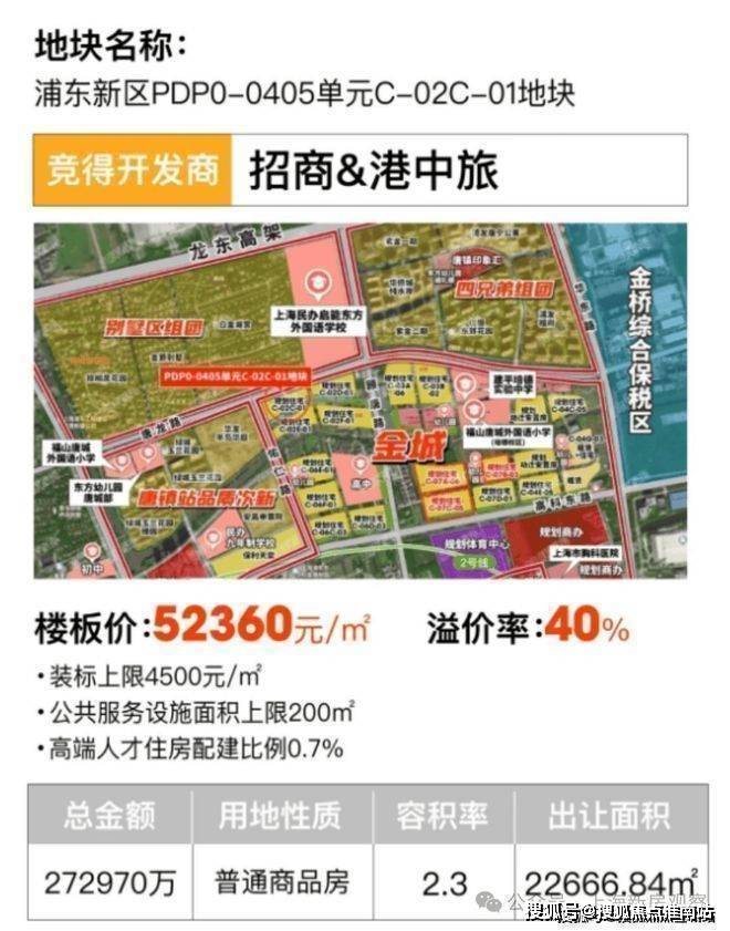 2024年11月28日,在上海第七批次土拍中,保利发展以楼板价44008元/㎡、溢价率26.6%拿下浦东新区PDP0-0405单元C-05C-04、C-05D-03地块,装修标准2500元/㎡
