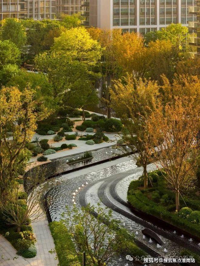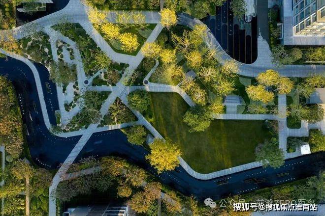 三重景观层次搭配 4:6 黄金配比的常落乔木, 春见新绿、秋赏红叶 ,让四季流转都有诗意相伴