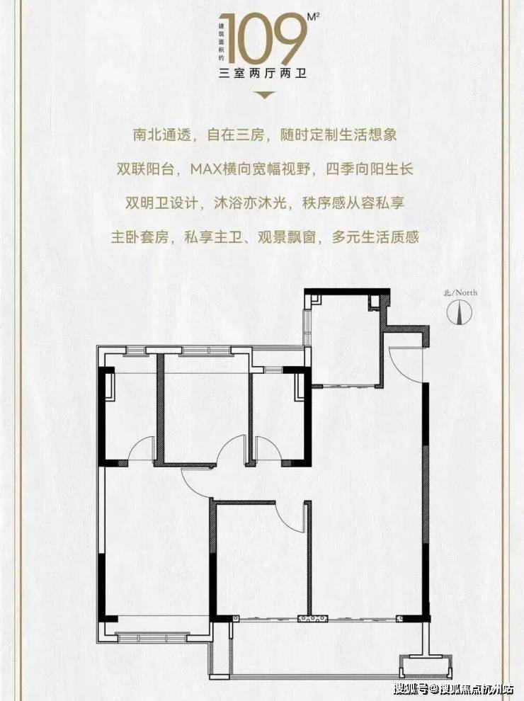 【建筑面积约109㎡三室两厅两卫】